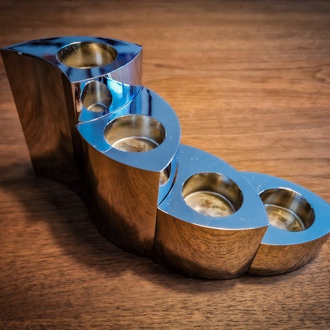 Säljer tre stycken Born in Sweden Puzzle ljusstakar i mycket bra skick. De är i ett set, large, medium och small. Guldfärgade med en svart ring upptill. Går att kombinera i många olika kombinationer tillsammans. Måtten är 27cm på large, 20 cm på medium och 14 cm på small. Säljer alla tre tillsammans för 300kr.