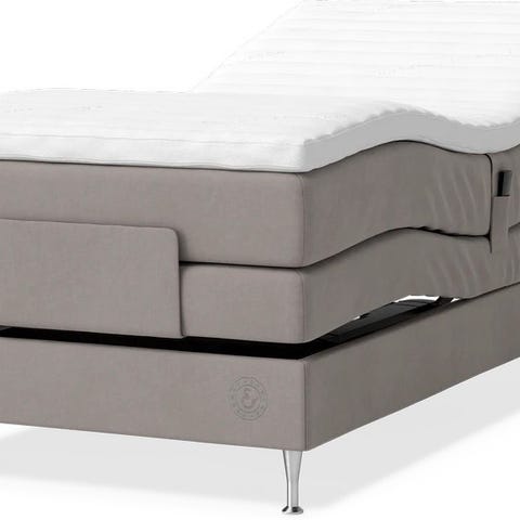 Mio kontinentalsäng i grått tyg. Sängen består av underdel, mellandel och bäddmadrass samt har ben i metall. Madrassen är en medium. Fjärrkontroll som även har lyse under sängen. Försiktigt använd, så den är som ny. Kan skicka bilder om någon önskar det. Säljer den pga av behov av en bredare säng. Kostade 30.000kr som ny. Pris kan diskuteras vid snabb affär😉