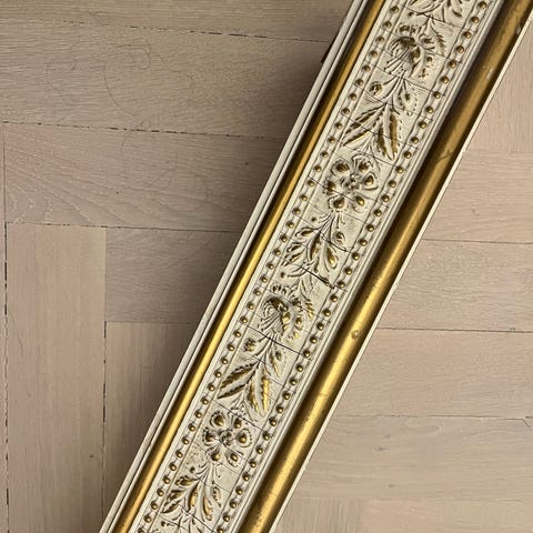 Guld spegel med rött sammet. Ingen aning om någonting om den egentligen eller hur gammal den är.. vill bli av med den och enligt andra har den kanske ett värde.. kanske ett fynd? Tänkte väl den kan vara värd 700 kr iaf.. köp köp köp så jag blir av med den innan flytt.