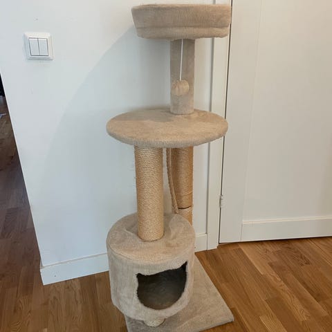 Klätterträd som du kan justera i höjd för att "fästa" mot taket för att få det stabilare.