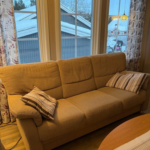 Säljer en soffa pluss fåtölj i bra skick för sin ålder visst finns de märken o dylikt men otroligt fin som sagt,