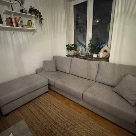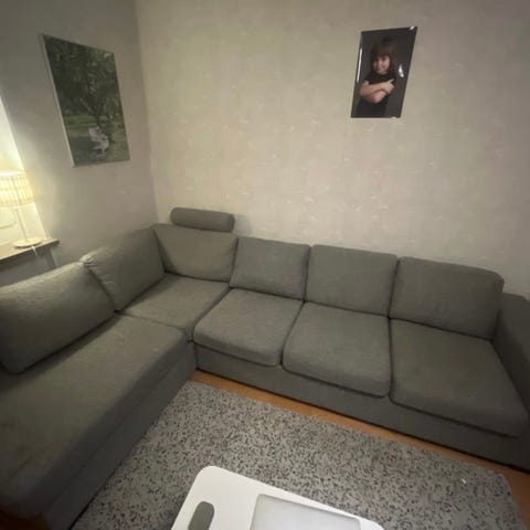 Divanen har en liten skada i tyget. Se bild 3. Har haft katt.