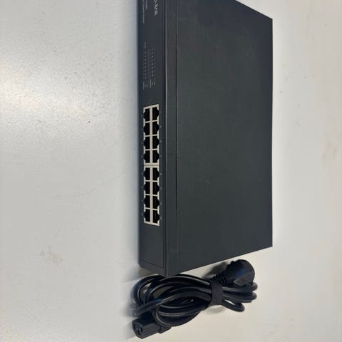 Linksys LGS116P V2 nätverksswitch med 16 Ethernet-portar. Enheten är avsedd för trådbundet nätverk och passar för användning i hem, kontor eller mindre nätverksmiljöer där flera enheter behöver anslutas via kabel. Färg svart. Levereras med extern strömadapter enligt bilder.