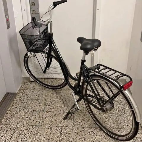 En enkel 3 växlad damcykel med korg på styret. Rammonterat lås med 2 nycklar. Lyset fungerade senast vi provade.
