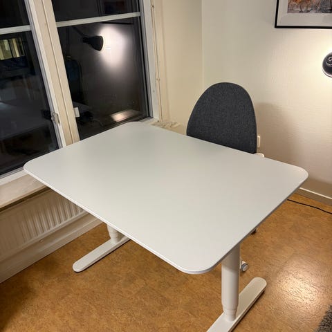 Säljer ett stilrent och praktiskt höj- och sänkbart skrivbord med elektrisk justering. Perfekt för hemmakontor eller arbetsplats där du vill kunna variera mellan att sitta och stå.
