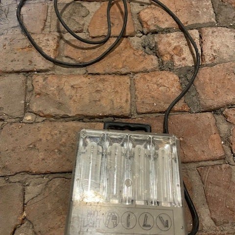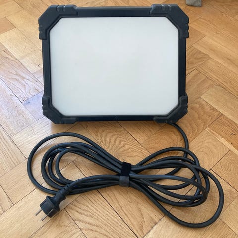 Malmbergs Kupolen arbetslampa för 230V med 42W GX24q‑4 ljuskälla. Lampan har vit kupolformad skärm och röd bas med integrerade eluttag. Avsedd som arbets- och byggbelysning i exempelvis garage, verkstad eller på byggarbetsplats. Utrustad med kabel och stickpropp för anslutning till vanligt eluttag.