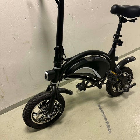 ELO Fold elcykel i svart utförande. Kompakt modell med mindre hjul, lämplig för stadskörning och kortare pendlingssträckor. Utrustad med elassistans, sadel, styre med display samt belysning fram och bak. Cykeln har ram med integrerat batteri och fotstöd. Passar vuxna användare som önskar en eldriven cykel i mindre format.