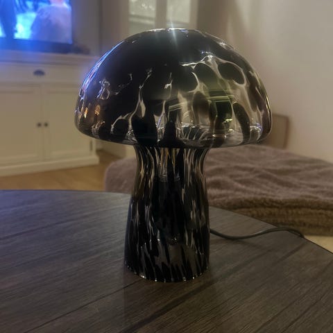 En vacker bordslampa i glas som ger ett behagligt sken. Lampan har ett unikt mönster i olika nyanser som gör den till en speciell inredningsdetalj.