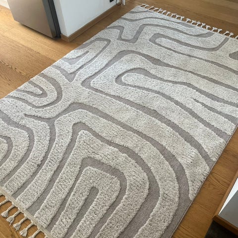 &Tradition matta med geometriskt, mönstrat motiv i flera färger. Mattan har ett traditionellt, rutindelat mönster med kontrasterande färgfält. Passar exempelvis i vardagsrum, hall eller sovrum som textil inredningsdetalj på golv.Handvävd
