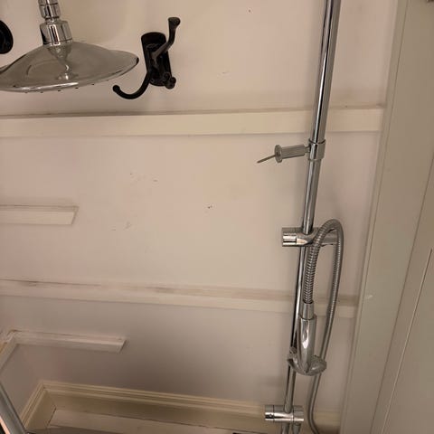 Komplett duschset i serien EuroMix från Duschy i vitt utförande. Setet innehåller handdusch med flera stråltyper, duschstång, duschslang samt tillbehör för montering.