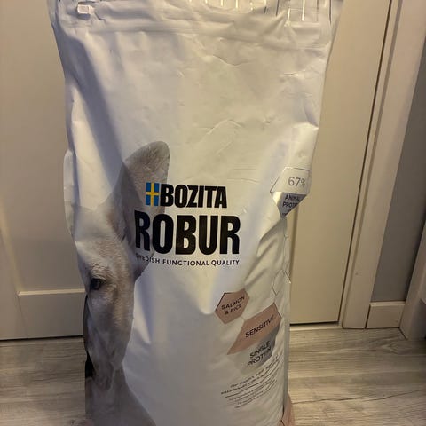 Bozita Robur Sensitive hundfoder Reindeer. Det är taget knappt 2 kg från påsen. Säljes pga foderbyte.