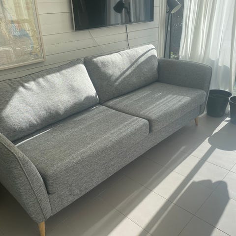 Skön soffa i bra, använt skick. Hämtas senast lördag 7/3 enligt överenskommelse.