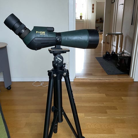 Visionking 30–90x100 tubkikare i svart utförande. Kikaren har variabel förstoring 30–90x och ett objektiv på 100 mm. Den är monterad på ett trebenstativ med justerbar höjd och panoramahuvud. Passar för exempelvis fågelskådning, natur- och landskapsobservationer eller andra aktiviteter där längre räckvidd behövs. Kikaren har vinklat okular för bekvämare användning vid längre observationer.