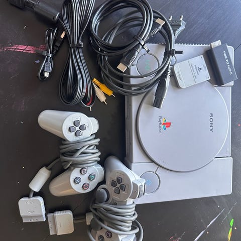 PS1 med spel o tillbehör.