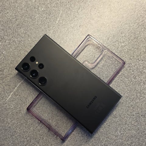 Samsung Galaxy S23 Ultra mobiltelefon med 256 GB intern lagring. 8GB minne. Batteriet fungerar normalt. Finns små repor på ramen nära S-pen. Finns lite till inga repor på skärmen. Har använt den med skärmskydd i flera år och tog av den nyligen.