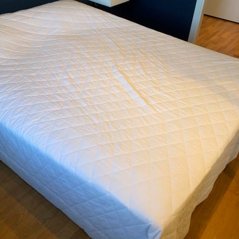 Madrassen har ett quiltat överdrag och ligger ovanpå en resår- eller kontinentalsäng. Överdraget är avtagbart och bäddmadrassen är utformad för att ge extra komfort ovanpå huvudmadrassen. Passar dubbelsäng enligt bilderna. Lämplig för användning i sovrum som extra komfortlager på befintlig säng.