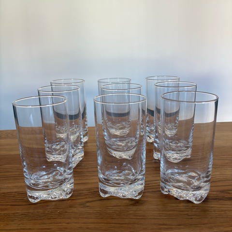9 st Vintage snapsglas med guldränder och räfflad design, italiensk produktion från mitten av 1900-tslet. 7 cm hög, 5 cm diameter.