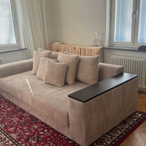 Bäddsoffa i bra skick med divan och förvaring från Sweef i färgen sand.