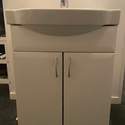 Badrumskommod med Qvesarumsblandare och skåp