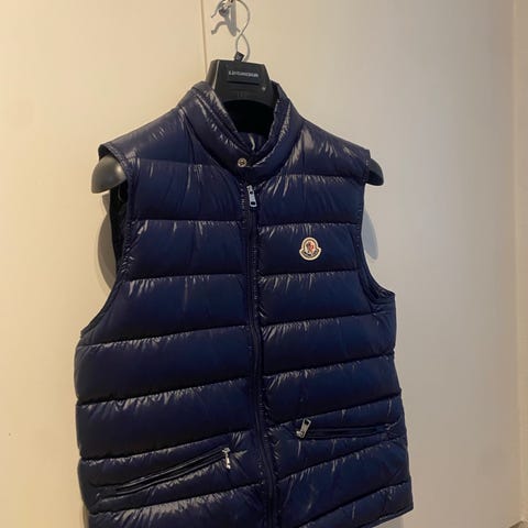 Moncler väst för herr i storlek S. Väst i röd färg tillverkad i nylon med quiltad design. Modellen har hög krage, dragkedja framtill och två framfickor med dragkedja. Passar som ytterplagg eller mellanlager vid kallare väder.