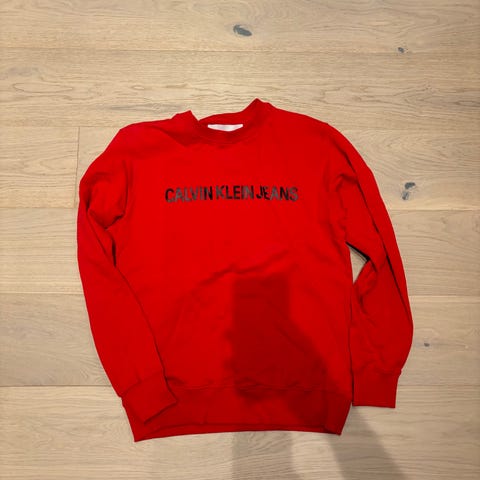 Storlek L, lite oversize. Tryck på ryggen. Färgen är typ orange/rosa. Finns i Bromma. Går att skicka.