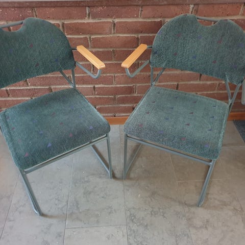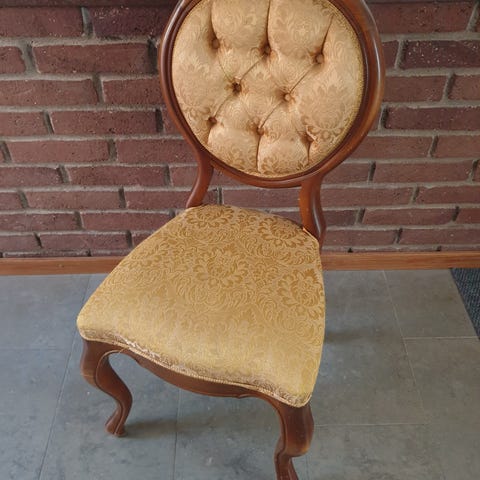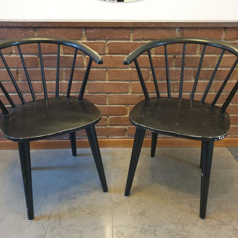 Säljer två fina äldre stolar med svarvade ben och klädd sits.