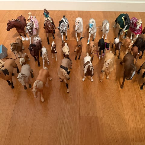 Schleich hästfigurer leksakshästar i olika modeller och färger. Samlingen består av flera hästar och föl i plast, avsedda som leksaker eller samlarfigurer. Passar för lek, samling eller som dekoration i stall- och bondgårdsmiljöer.