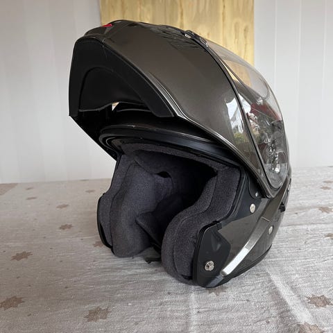 Hjälmen har använts ett fåtal gånger. inte varit med om en krock.