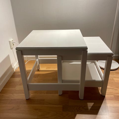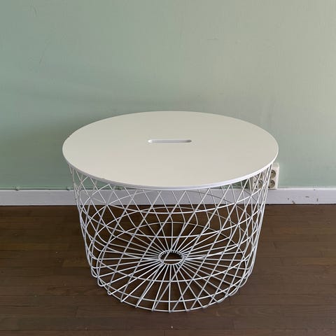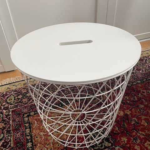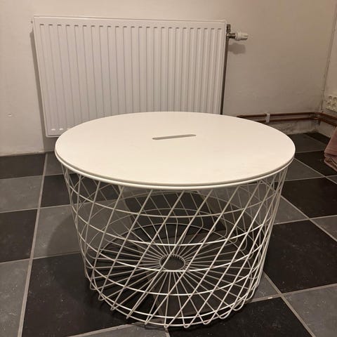 Vitt litet soffbord i stringdesign från IKEA med förvaring. Fint skick
