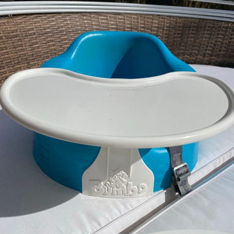 Matstol för barn i svart färg med integrerad matbricka. Stolen har en sits med säkerhetsbälte och en stabil ram. Passar för matning och sittstunder vid bordet för mindre barn.