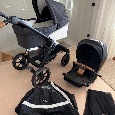Emmaljunga NXT 90 barnvagn med liggdel och sittdel grå