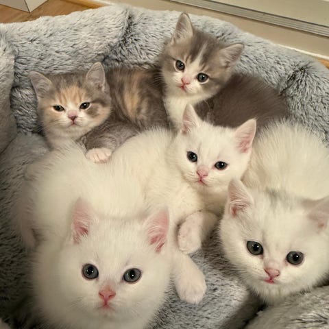 Både mamma och pappa är ragdoll/chinchilla perser mix. Sista bilden visar deras ett år äldre syster, ett fint exempel på hur dessa sötnosar kommer att se upp färdigväxt!