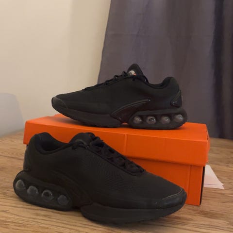 Nike sneakers i storlek 43. Modellen är i beige ton med synlig luftdämpning i sulan och textdetaljen "AIR" på sidan. Ovandel i syntet- och textilmaterial med perforerade partier för ventilation. Snörning framtill och gummisula med mönstrad undersida för grepp. Passar som vardagssko eller fritidssko.