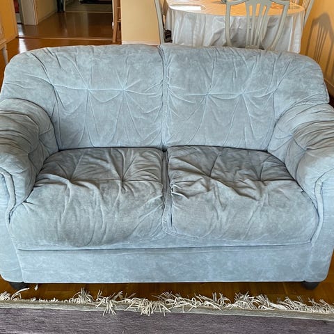 Hela gruppen bortskänkes mot avhämtning – först till kvarn. Allt är i bra skick, med undantag för tresitssoffan som har en mindre defekt