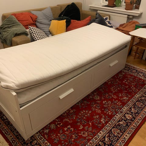 Jag har en soffgrupp som jag ger bort gratis. Den består av en tresitssoffa, en tvåsitssoffa och två fåtöljer. Alla kan fällas ut och bli som en säng. Även om de är använda, så är de i bra skick och passar bra för den som behöver dem.”