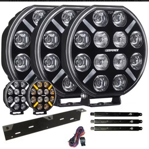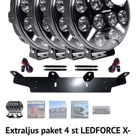 Ledforce Apex extraljus 120W LED 3-pack för fordon med 9–32V elsystem. Paketet innehåller tre runda LED-extraljus, extraljushållare, stag och reläkabelsats. Avsett för montering på bil eller annat fordon där extra belysning önskas, exempelvis vid mörkerkörning eller på landsväg. LED-tekniken ger vitt ljus och låg energiförbrukning jämfört med traditionella halogenljus.