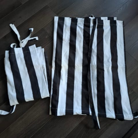 Gröna hissgardiner inköpta på IKEA för några år sedan men aldrig öppnade.