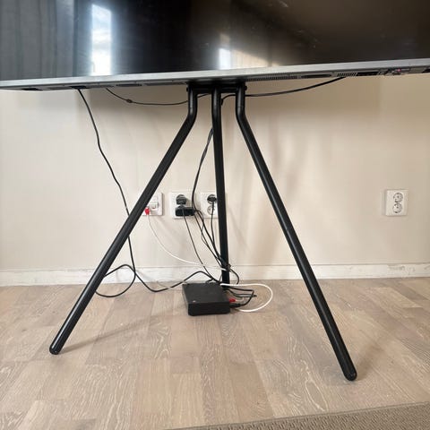 Samsung TV-stativ för bord/mediamöbel. Fristående fot med metallben och monteringsplatta i plast/metall för att fästa en kompatibel Samsung-TV. Stativet är avsett för placering av TV på plan yta och levereras som lös del utan TV eller skruvar om inget annat anges av säljaren.