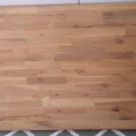 Skivan är stabil och i bra skick, men det finns en liten skada på ovansidan (se bild). Det påverkar inte funktionen.