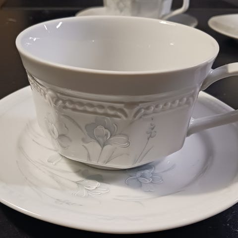Säljer en kaffeservis av märket Seltmann Weiden Bavaria. Skicket är i nyskick o mycket varsamt använd. Den är diskret dekorerad med gråa blad o vita blommor. I servisen ingår: 12 st koppar, 12 st tefat, 12 st assietter, 1 st kaffekanna med lock, 1 st sockerskål med lock, 1 st gräddkanna.