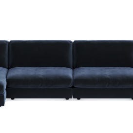 En stilren och rejäl soffa med metallben och sammetsliknande tyg i varm sand/beige ton. Väldigt bekväm sitthöjd (44 cm) och generöst sittdjup. Perfekt som mindre hörnsoffa eller loungedel. Klädseln på kuddarna går att ta av och tvätta, men själva soffan har fast klädsel.