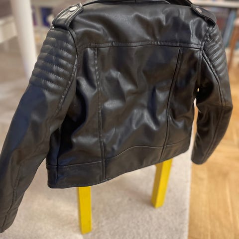 Original Harley Davidson skinnjacka, storlek 104/110/116. Väl sliten men fortfarande i gott skick. Något skadade ärmar.
