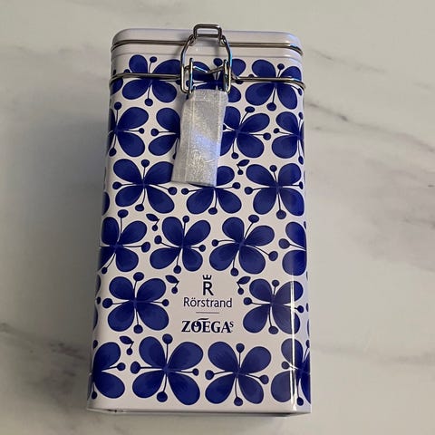Kaffe oöppnat och kaffeburk från Rörstrand och Zoégas som kom i begränsad utgåva.