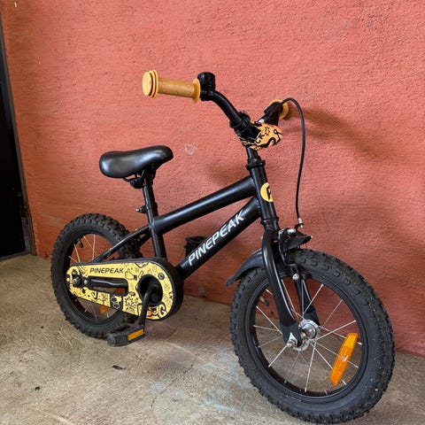 Stabil barncykek som är utrustad med fotbroms och ny V broms fram. Kedjeskydd sitter på men är lite slitet. Väl omhändertagen och har alltid förvarats under tak. Nyservad i butik. Finns i karlstad.