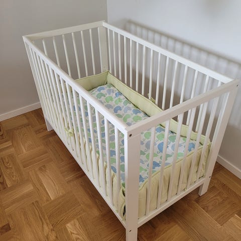 Tillbehör till spjälsäng- täcke, kudde, madrass och spjälskydd