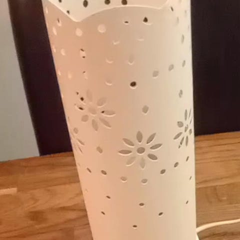 Dyberg Larsen bordslampa i cylinderformad design. Lampan är tillverkad i perforerad metall i beige färg, vilket ger ett genomsläppligt ljusmönster runtom. På foten finns en vridknapp för att tända och släcka lampan. Passar som stämningsbelysning på bord, hylla eller fönsterbräda i olika rum i hemmet. Laddningsbar.