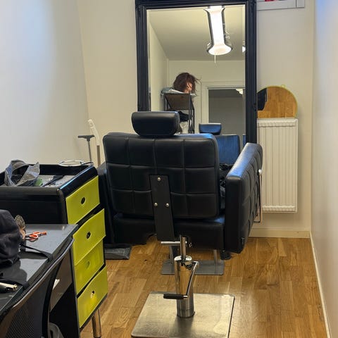 Säljer en dubbelsidig spegelstation med LED-belysning, perfekt för frisörsalong eller beauty studio. Två personer kan arbeta samtidigt.