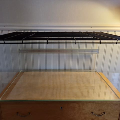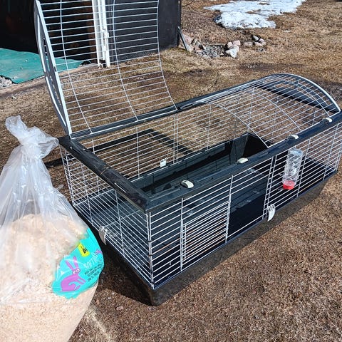 Blå bur med avtagbar överdel samt öppningsbart lock.