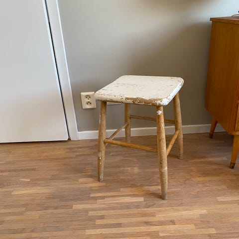 Äldre pall i trä med fin patina.
