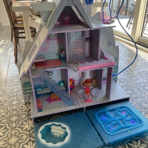 Ett fint LOL Surprise dockhus med vintertema; ljusslingor, pool, skridskobana med ljus, lampor och många fler spännande funktioner! Tillverkat i trä. Det medföljer möbler, tillbehör och dockor med kläder.